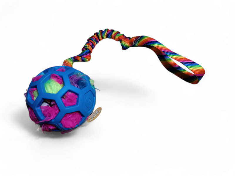 JW Hol-ee maat M met een leuke harige monster bal, voorzien van een bungee handvat.